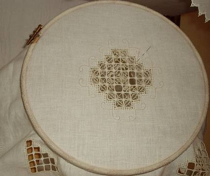 l’intaglio e i primi punti senza telaio, Laura Marzorati per il reticello.