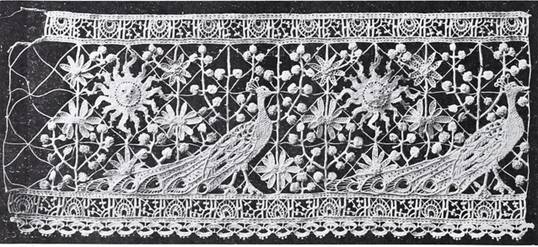 Marsaglia e una trina con un fregio di pavoni,