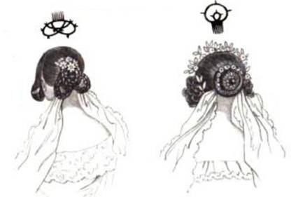 bianco o biondo. La barbola oltre a essere un ornamento per la cuffia veniva inserita anche in elaborate acconciature realizzate con fiori, nastri e fiocchi. Nelle riviste di moda