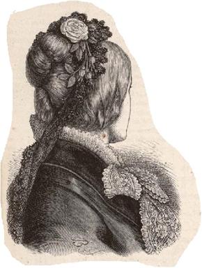 da giorno per una signora anziana “Harper’s Bazar”, 1871. L’acconciatura è proposta con la barbola.