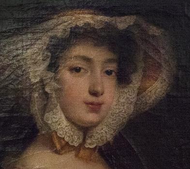 Barbina, metà del XVIII secolo Le barbine sono le guarnizioni di merletto o tulle, arricciati e posti all’interno del cappellino o cuffia da incorniciare