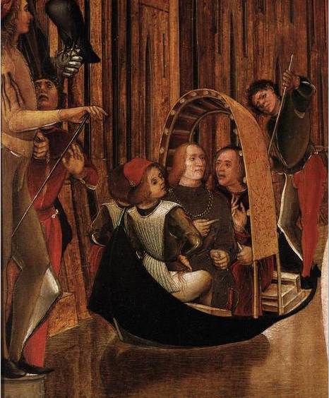 bella vista su una panchetta fuori del felze; in seguito verso il ‘600, presero posto su un ricco tappeto