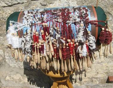 due lunghe punte sul davanti, è guarnita tutt’intorno da una blonda (merletto