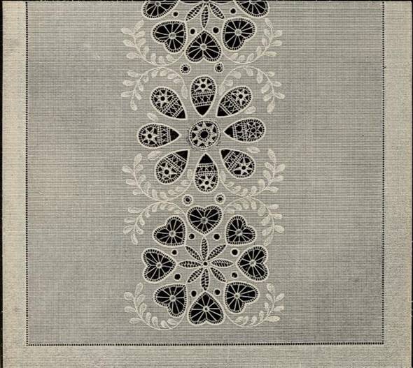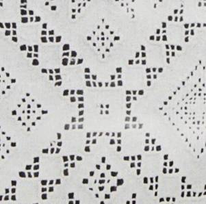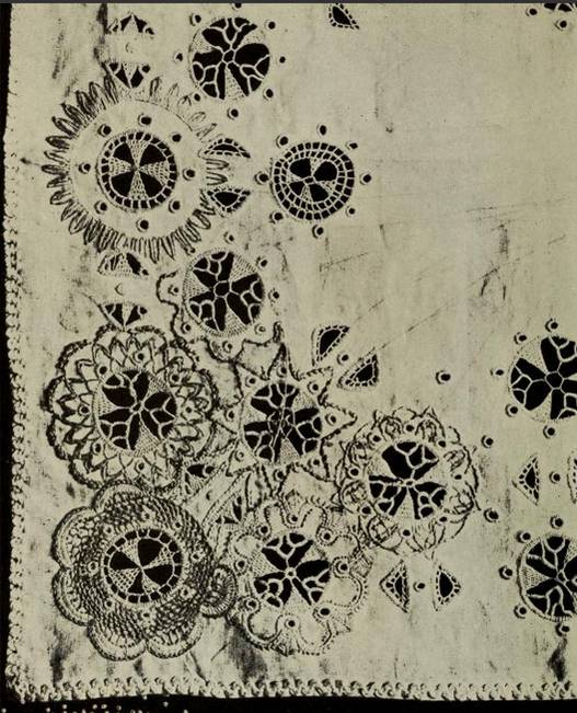 associa questo pizzo ad alcuni ornamenti indo-persiani. Anche in questo caso troviamo dei vuoti al centro delle foglie e dei fiori, riempiti