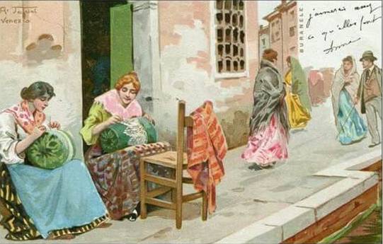 L’anziana operaia trovata a Pellestrina nel 1870 dal Comm. Jesurum, che fu la prima a ristabilire i vari punti a fuselli e fu la maestra della prima scuola professionale.