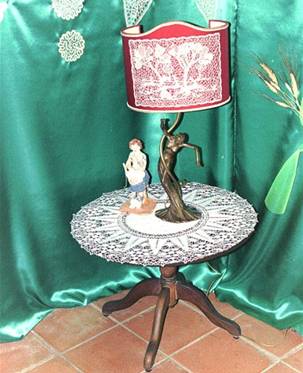Centrotavola, lampada e tralcio di fiori di Annalena