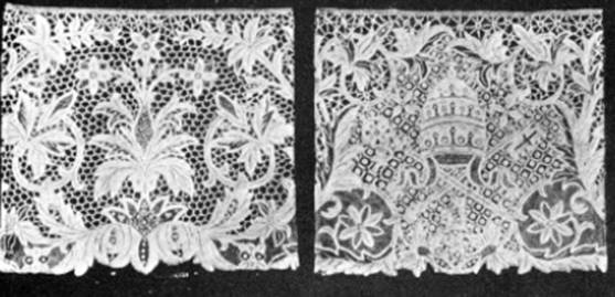 ricami, poi sfilando il tessuto si aggiunsero trafori tramite il reticello trasformandolo in un vero merletto. Nei primi