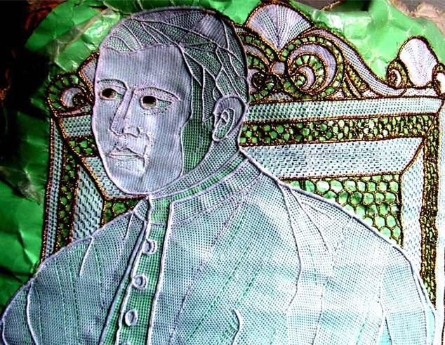 ha realizzato in merletto ad ago una raffigurazione di Papa Pio X. |